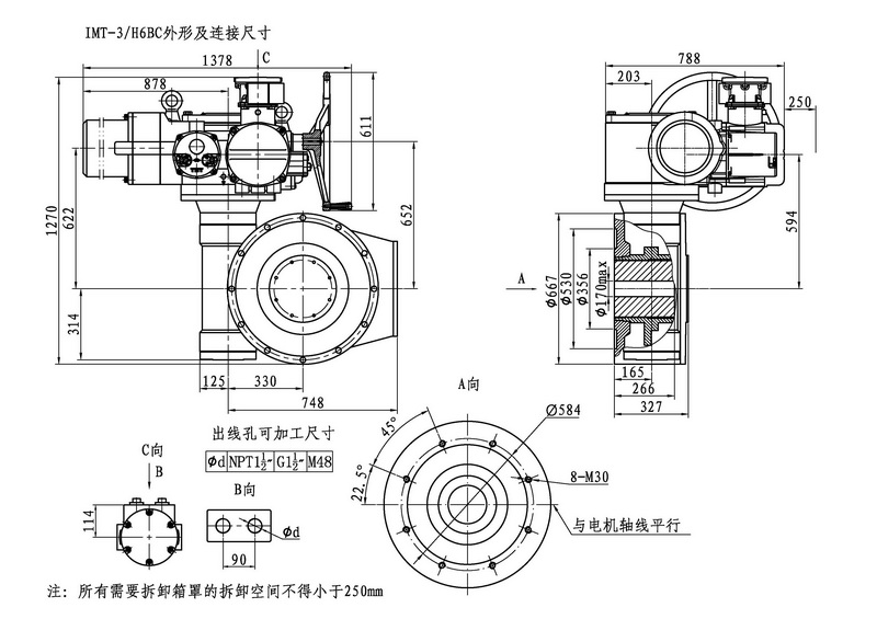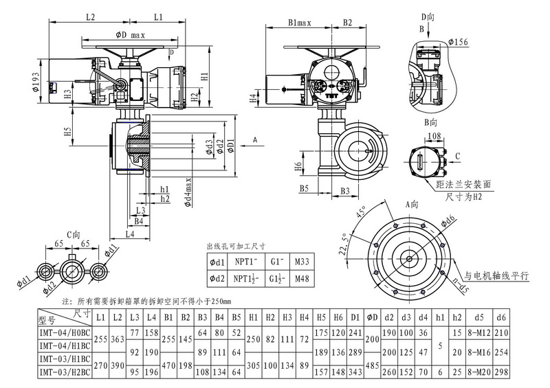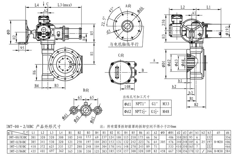 IMT/HBC系列智能型電動裝置是IMT系列多回轉(zhuǎn)智能型電動裝置與HBC蝸輪減速器的組合型式,它適合球閥、蝶閥等部分回轉(zhuǎn)閥門的驅(qū)動控制。 IMT/HBC智能型電動裝置具有以下特點(diǎn):結(jié)構(gòu)設(shè)計堅(jiān)固可靠,產(chǎn)品規(guī)格齊全,驅(qū)動轉(zhuǎn)矩范圍大且動力輸出穩(wěn)定, 具有良好的自鎖性能。 HBC輸出軸結(jié)構(gòu)獨(dú)特,裝有與閥桿連接的漸開線花鍵接頭,產(chǎn)品的安裝調(diào)試方便。