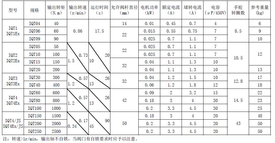 IQT1~IQT4/JS(380V三相電機)系列技術參數表