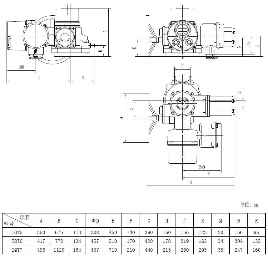 IQT系列智能型電動執行機構是我公司最新研制的具有完全自主知識產權的新一代智能化控制產品。其采用超大規模的模擬和數字混合集成芯片進行設計,組成SOC系統。使得精確控制與高性能實現完美結合,其中設置的功能涵蓋了用戶對此執行機構的所有技術要求。IQT系列為部分回轉型,輸出轉矩范圍50N.m~12000N.m。