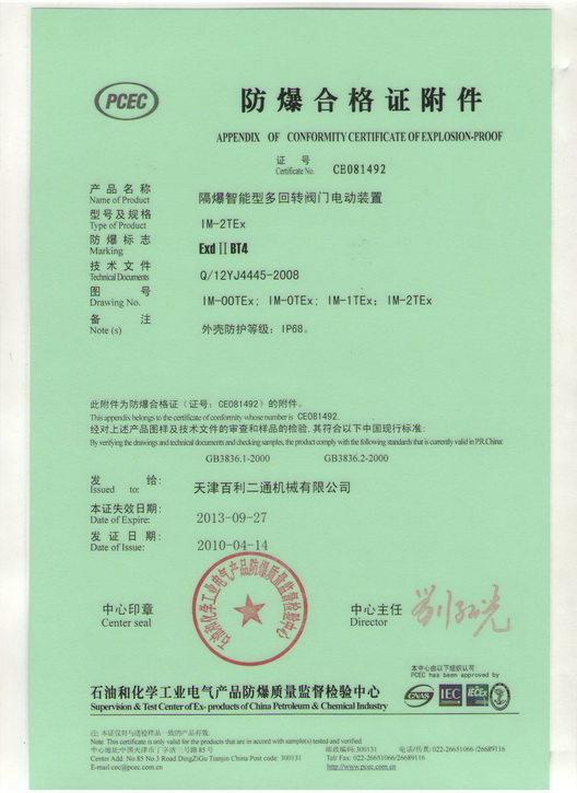 IMT00-2Ex Conformity Certification of Explosion-proof