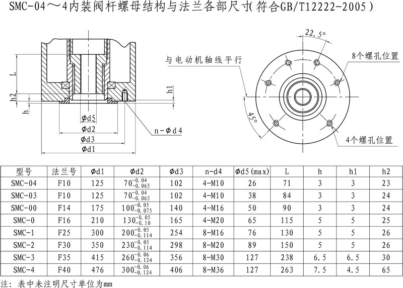 SMC-04~4內裝閥桿螺母結構與法蘭各部尺寸
