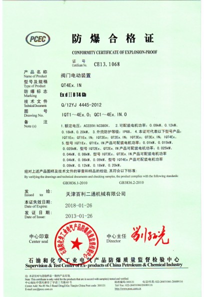 QT1~QT4型部分回轉(zhuǎn)閥門電動裝置是我公司最新研制的換代型產(chǎn)品。適用于控制蝶閥、球閥、旋塞閥等做90°回轉(zhuǎn)的閥門。該產(chǎn)品替代同規(guī)格的QB系列產(chǎn)品,體積小、重量輕、具有高效率、高可靠性、高防護(hù)性能、低噪音等特點(diǎn)。可現(xiàn)場操作,也可遠(yuǎn)距離控制。可廣泛用于石油、化工、發(fā)電廠、水處理、造紙等各行業(yè)。該產(chǎn)品的防護(hù)等級為IP67,隔爆型產(chǎn)品(型號中有Ex)的隔爆等級為dⅡBT4。