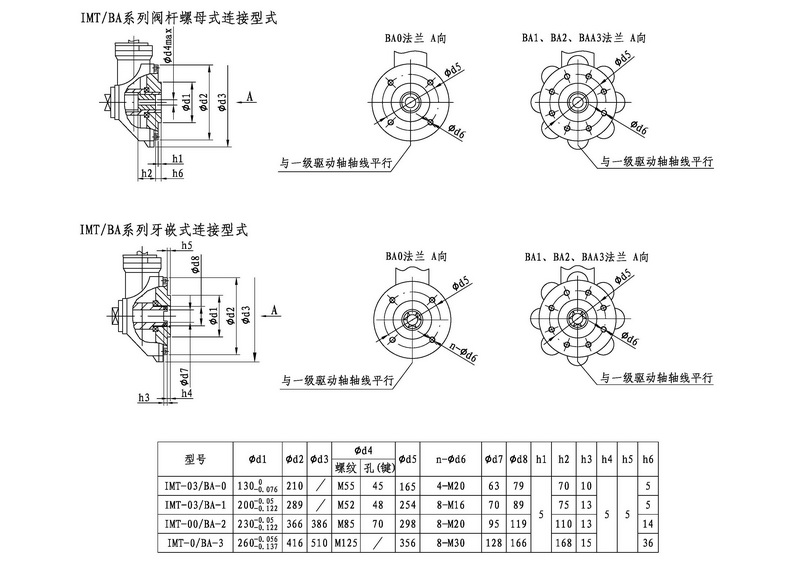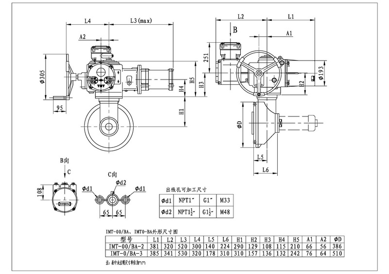 IMT/BA系列智能型電動裝置是IMT系列中小轉矩多回轉智能型電動裝置與BA圓錐齒輪減速器的一種組合型式,它適合閘閥、截止閥等多回轉閥門的驅動控制。IMT/BA智能型電動裝置具有以下特點:以較小轉矩規格的IMT電動裝置與BA減速器組合可獲得更大的輸出轉矩。在輸出轉速允許的條件下,選用該產品能夠提高所選電動裝置規格的通用性,便于產品的使用、維護。