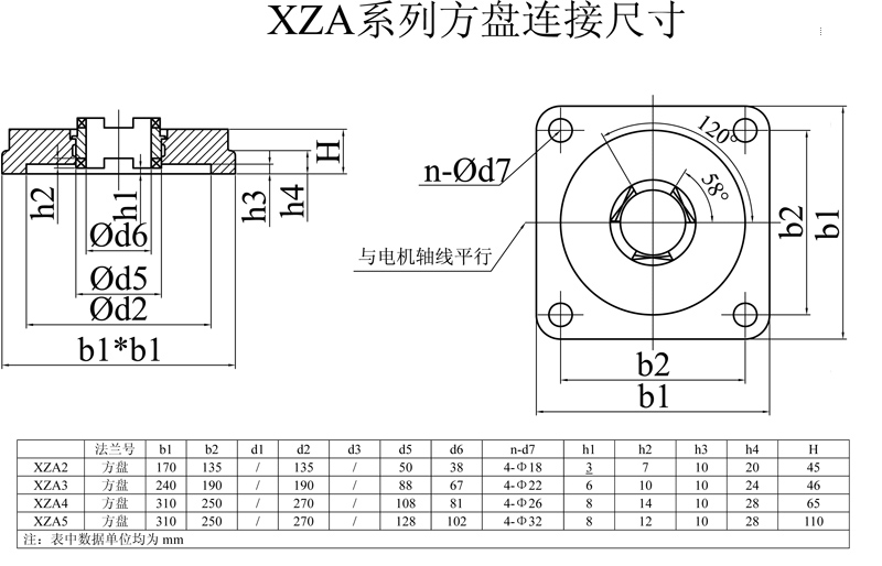 XZA系列方盤法蘭連接尺寸