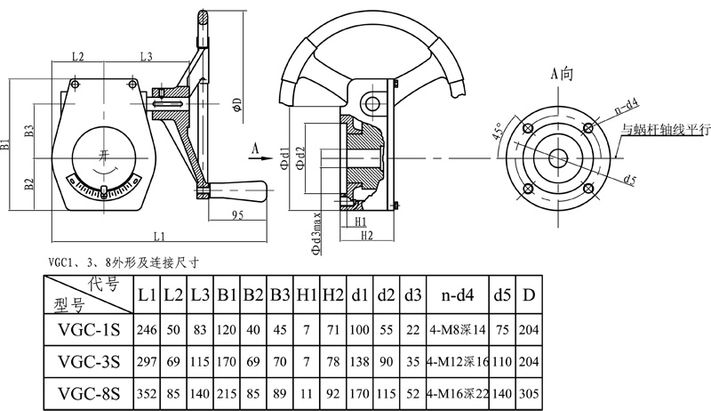 VGC系列閥門手動裝置是一種90º回轉(zhuǎn)型閥門驅(qū)動裝置。主要適用于蝶閥、球閥、旋塞閥等類型閥門。該系列產(chǎn)品結(jié)構(gòu)設(shè)計(jì)簡單,體積小,重量輕,安裝使用方便,用戶可以根據(jù)不同需要選擇手輪安裝位置。當(dāng)用戶需要樣本以外的連接形式和尺寸時請?jiān)谟嗀洉r說明,我公司將滿足您的要求。